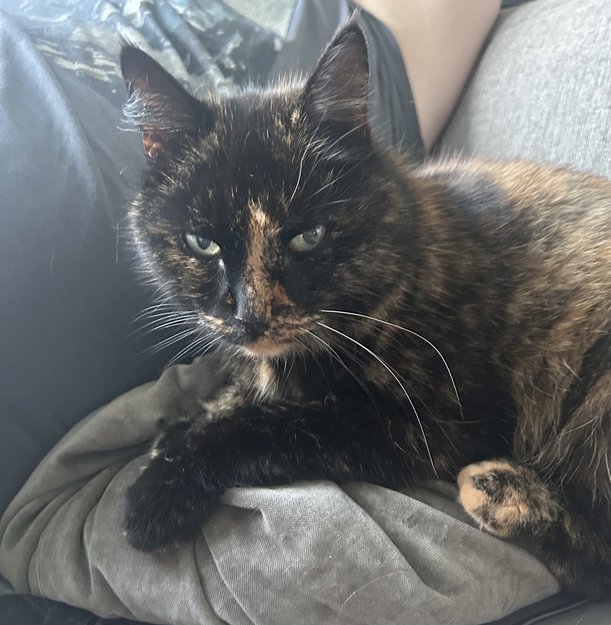Hun er glad i å gå tur men aldri så lenge som dette. Hun er en eldre katt og er veldig savnet.