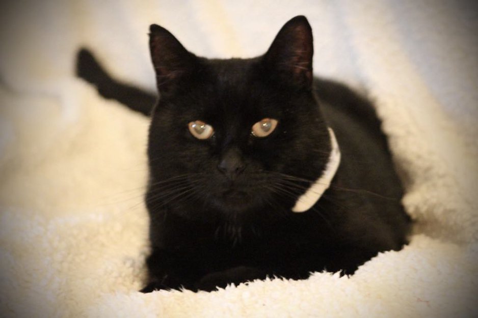 Slank katt, med veldig fin svart pels med nydelig glans. Han hadde på seg flåttbånd (lysegrå) med Tractive sporingsbrikke på (hvit).