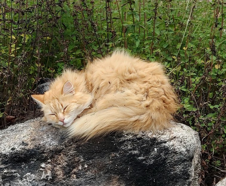 Semi-langhåret, med buskete hale. Litt kortere pels på haletuppen. Har en klassisk M i pannen.