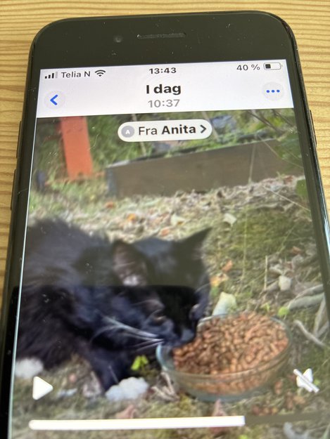 Katt funnet- virker ganske ung. Svart, hvit på labbene, litt hvit under haken. Gis foring på finneplassen. Ta kontakt med Anita Saugestad, tlf. 99736117