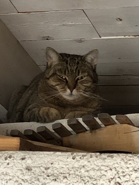 Sort, brun, beige, h hannkatt funnet i Trondheim