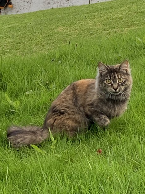 Vi har vært på ferie en ukes tid og kom hjem 03.08. Vi har hatt kattepasser som ikke har sett henne mens vi har vært borte. Naboene våre så henne sist den 04.08. Molly har ikke kommet hjem enda.