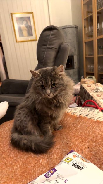 Hun er en norsk skogskatt med lang grå pels. Hun er ikke veldig sosial og ikke så glad i fremmede.