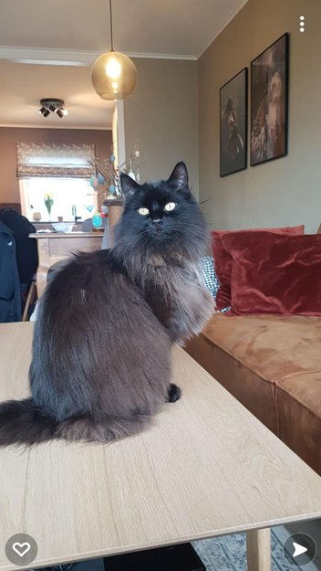 Lang pels, 11 år. Litt grått og brunt i pelsen.