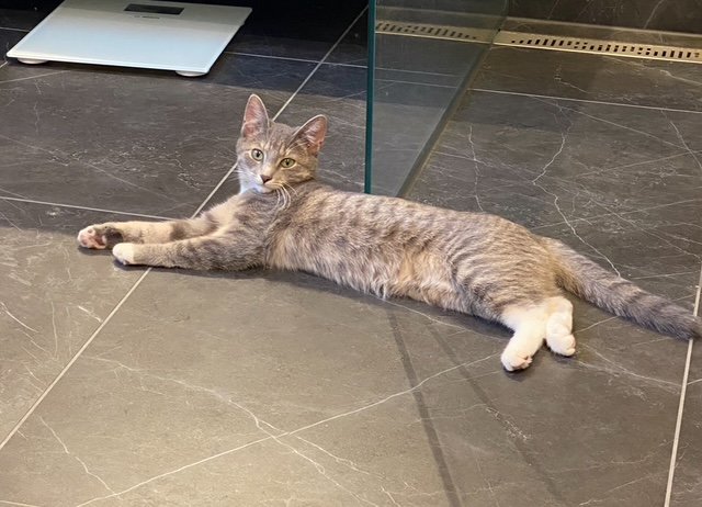Liten gårspraglete hunnkatt med hvite poter. Har en luten hårtust som sikker ut fra den ene ørespissen. Kosete katt som er glad i mennesker. Millie er 4 år gammel og chippet. Er svært glad i å være utendørs, men er ikke kjent i området hvor hun forsvant.