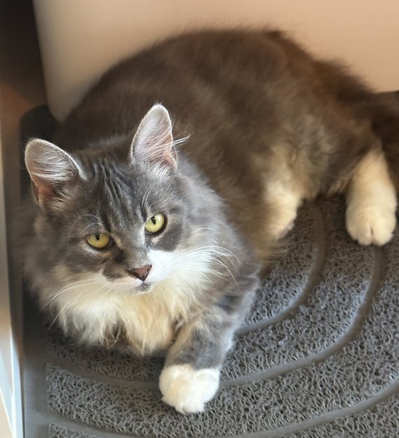 Hun er 3,5 år, chippet, kastrert. Er nå løveklippet.