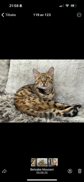 Bengal - gutt - kastrert - prikker på mage og lår - kjærlig - mjauer høyt