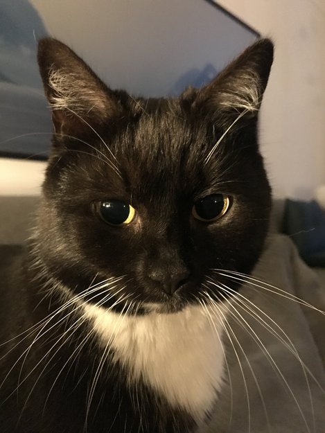 Veldig søtt ansikt. Kan se ung ut, men er 10 år. Operert for brokk når hun var 6 mnd, men trolig kun en veterinær som kan se dette.