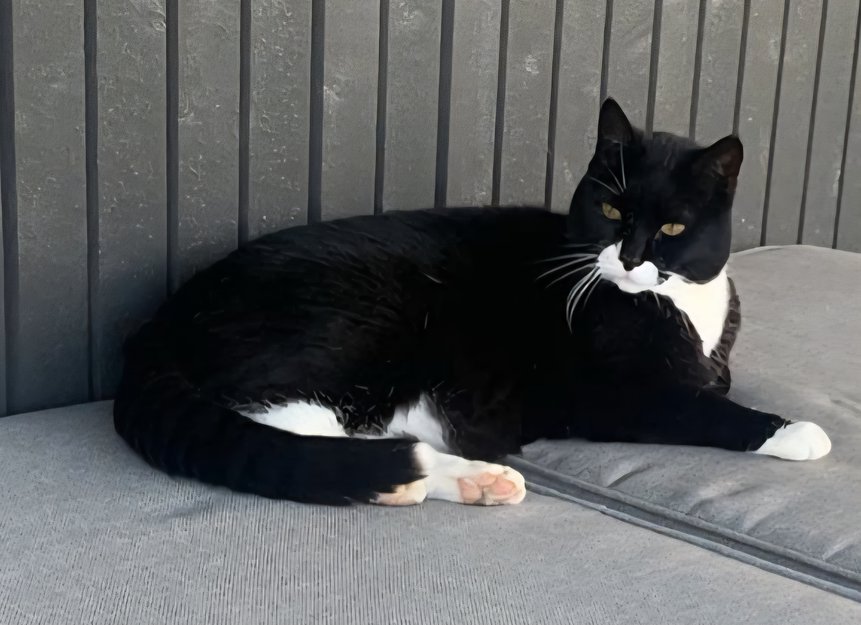 Hvite sokker på bena, hvit haletupp og hvit på bryst/hals.