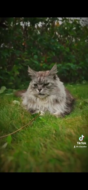 Møster og farge i pels til Frida er sølvtabby. Hun har kronisk betennelse i øyne og har derfor noe verk.