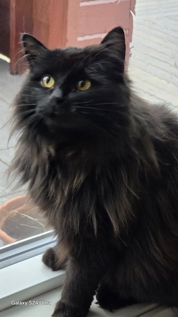 Sheba har en liten pels tuft som stikker opp i venstre panne mot venstre øret.
