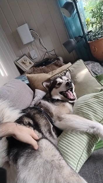 Grå/svart/hvit hannhund var savnet i Grimstad