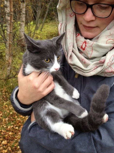 Fant liten grå hunnkatt, ca 6mnd gammel, på vei opp geitfjellet. Virket forvirret og på villspor. Ingen i nærheten kjente til den, tok den med hjem. Veldig kosete.