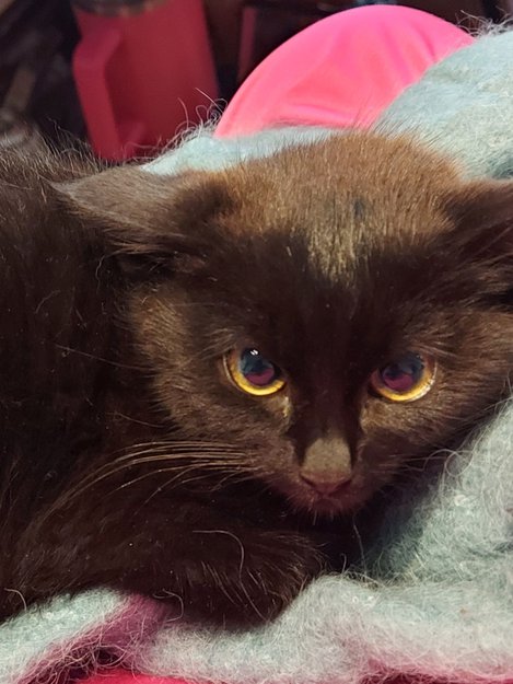 en liten kattejente ble funnet alene ute, usikker på alder men kan ikke være mer enn 2-3 mnd