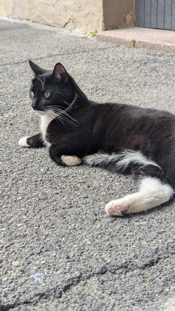 Han har lange værhår. Han henger rundt Bislett stadion.