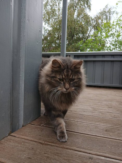 Veldig kontaktsøkende og kjælen kastrert hannkatt har vært på terrassen min på Rosenborg siden 17/8. Sover på terrassen om natten og vil ikke dra hjem. Dette skjedde også for 2 år siden. Han var plutselig "boende" på terrassen i 2-3 uker og forsvant. Han er søt, men katten min (sterilisert) liker ikke ham. Er det noen som savner ham eller bare slipper ham ut mens de er bortreist? Jeg var innom dyreklinikk for å sjekke hans chip, men han er dessverre ikke chippet.