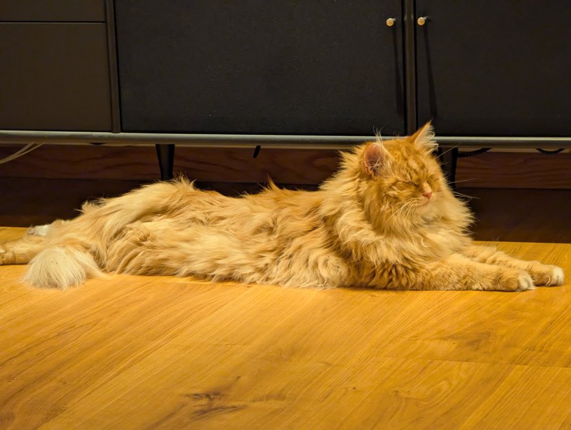 Vi har gitt katten mat og den er fortsatt hjemme hos oss.