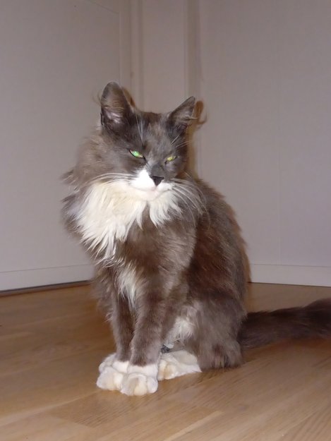 Fann denne katten i Ulsteinvik, i veikanten ca utafor car wash. Den låg i gresset. Vandt med mennesker å veldig kontaktsøkende. Veldig underernært.