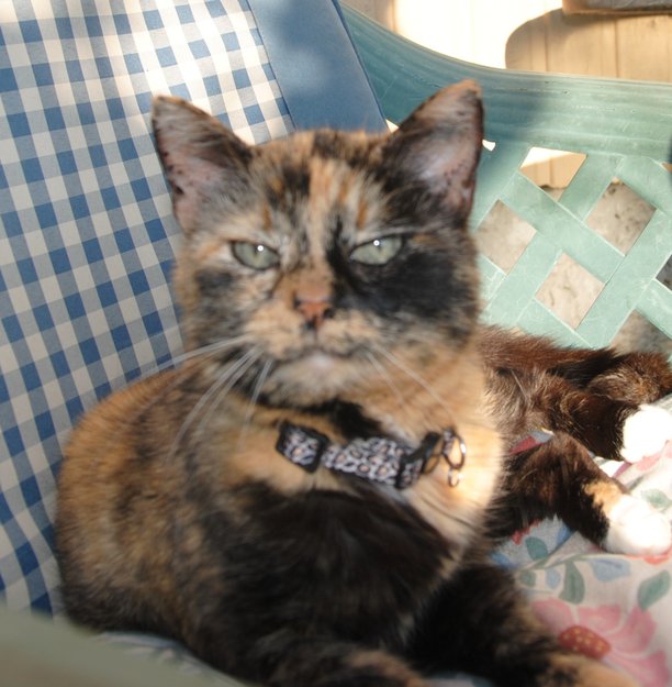 Hun er veldig liten; kan forveksles med en ung katt, men er ei Senior Dame på over 15 år som ikke lenger ser så godt. Hun har spraglete lys pels, kan se litt fortumla ut, har på seg halsbåndet på bilde og er både tatovert i venstre øra og chippa - er det noen som har sett henne eller vet hvor hun befinner seg hadde jeg, søster-katten og broder-hunden hennes blitt veldig glade ❤