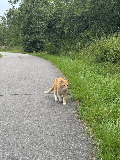 Oransje katt, relativt slank, observert siste par uker i området ved Grorud t-banestasjon. Kosete. Ikke tatovert i øret.
