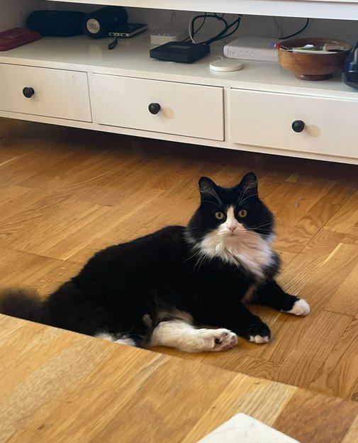 Vi mistenker at Kenai kan ha sneket seg ut i natt til 27. august. Han er en hannkatt på ca 6 år, innekatt til vanlig og ikke kjent i området. Han har sort lang pels, hvitt ansikt og mage. Han har korte hvite sokketegninger på forpotene og hvite knesokk-tegninger på bakbena. Han er sky for fremmede og kan ha gjemt seg i garasjer/boder. Hvis du ser ham, kontakt oss gjerne på 90871411. Han er adoptert fra dyrebeskyttelsen Lillestrøm og omegn, og chipen hans er fremdeles registrert på dem.