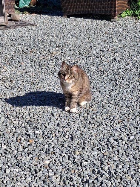 Katten var chipet og eier ble kontaktet. Gjenstår å få fanget den nå og gjenforenes med sin eier som har savnet katten siden våren 2022🥰