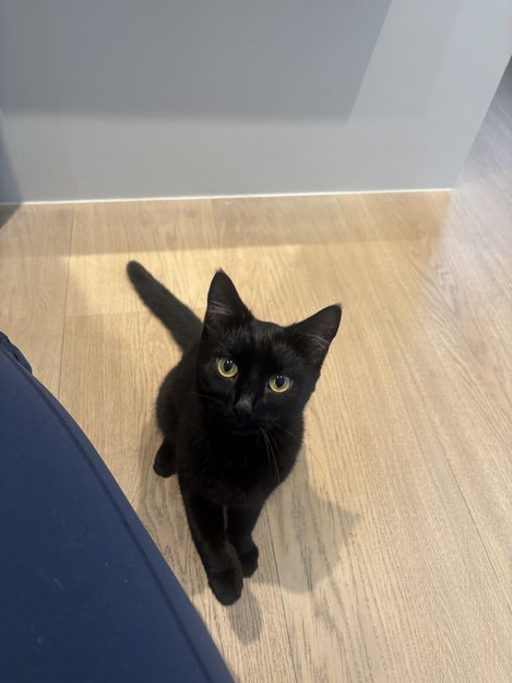 Denne svarte katten har vært på besøk hos oss hver dag i en ukes tid nå.