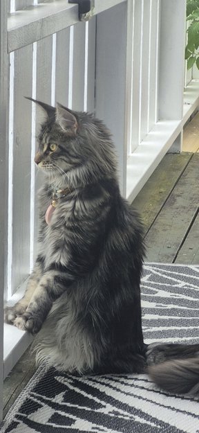 Katten var ute på altanen/ plenen. Plutselig var den borte