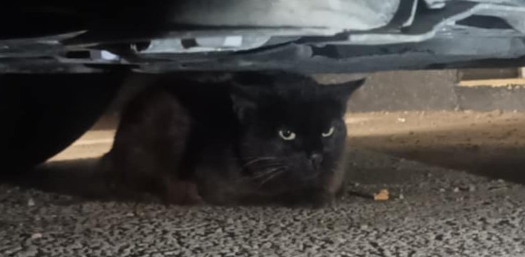 En katt er observert i parkeringskjelleren til Nes kulturhus. Den lot seg fange, men kom seg løs og gjemte seg under en bil.
