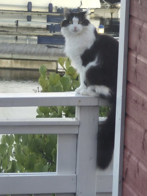 Svart og hvit. Har ett stempel i øre , for at han er shippet .