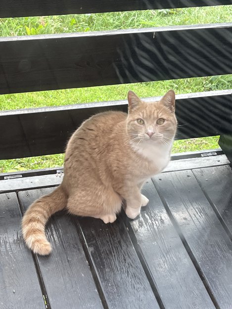Rødoransje, ganske stor korthåret katt, antatt hunkatt har vært i området i hele sommer. Kommer og går hos flere husstander i samme nabolag. Var først sky, men er etter hvert blitt veldig kontaktsøkende og ekstremt kosete. Vi har ikke sluppet den inn, men gitt den vann og litt mat ute. Det har nok flere naboer også gjort.