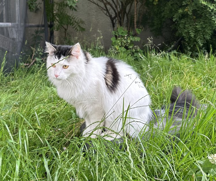 Katten ble funnet av hyggelig dame som ringte oss, sulten men glad!