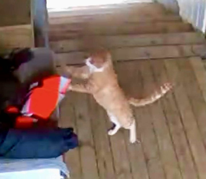Katt frekventerer området, ser ut som den mangler hjem og eier. Vill og skyr mennesker. Agresiv ovenfor andre katter