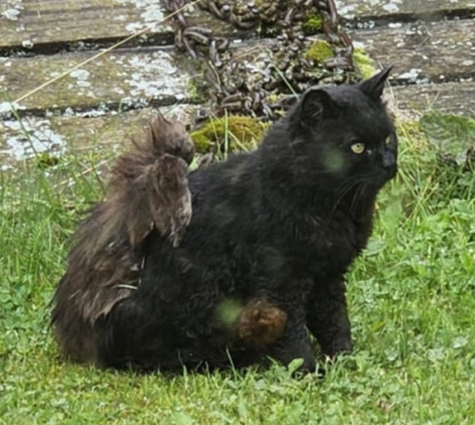 Gått i området en stund, men ikke fått tatt bilde før nå. Noen som har kjennskap til denne katten ? Oppholder seg i området koreavegen/riksveg 4/ Blilie. Har noen voldsomme tugger på ryggen.