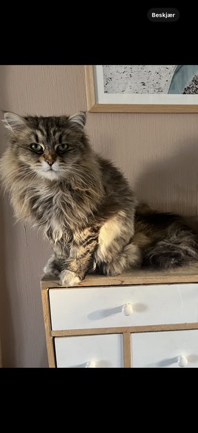 Grå-brun, noe hvit hunnkatt var savnet i Færder