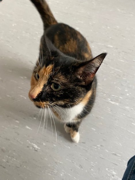 Hun er tricolour, ukjent alder men estimert til to år, ca 3,5-4 kg.