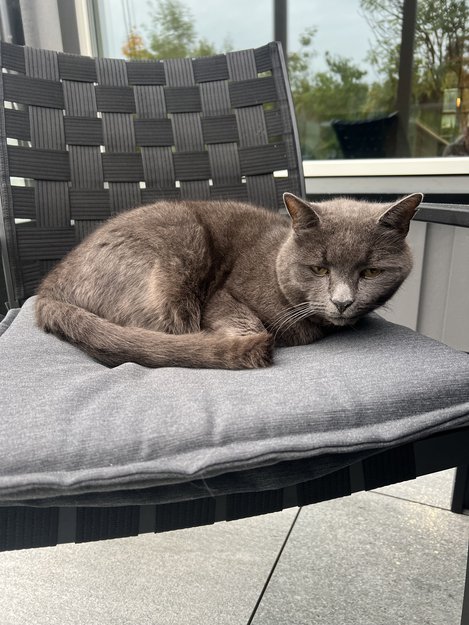 Kontaktsøkende katt som har oppholdt seg rundt huset vårt siden i går ettermiddag. Vi har aldri sett denne katten i området tidligere.