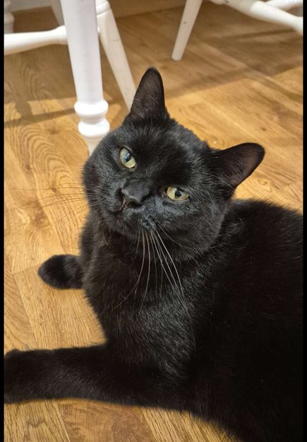 Han har helsvart kort pels og er en større hannkatt