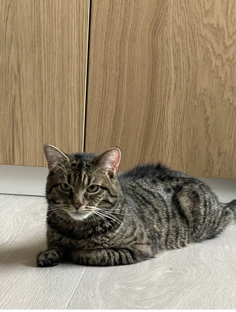 Katten vingler av og til litt til siden , har av og til litt problem med balanse til venstre side . Er veldig forsiktig av seg og sky . Er en veldig snill katt som familien savner uendelig .
