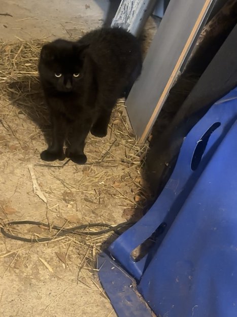 Svart katt som dukket opp ved vårt småbruk på Sparbu like før sommerferien. Har oppholdt seg rundt huset vårt siden, og virker å bli fort trygg på mennesker.