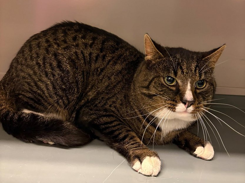 Denne hannkatten kom inn til oss fra Dalen Hageby i Trondheim, hvor han hadde blitt observert gående ute siden høsten 2024. Ingen i nabolaget kjente til katten, men det er tydelig at han har hatt en eier, da han hadde et halsbånd på. Han er dessverre verken kastrert eller ID-merket.