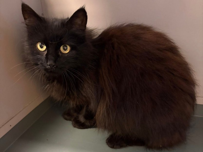 Denne hunnkatten kom inn til oss fra Lensvik i Orkland kommune, hvor hun hadde blitt funnet på en låve sammen med sine 5 små kattunger. Hun er dessverre verken kastrert eller ID-merket.
