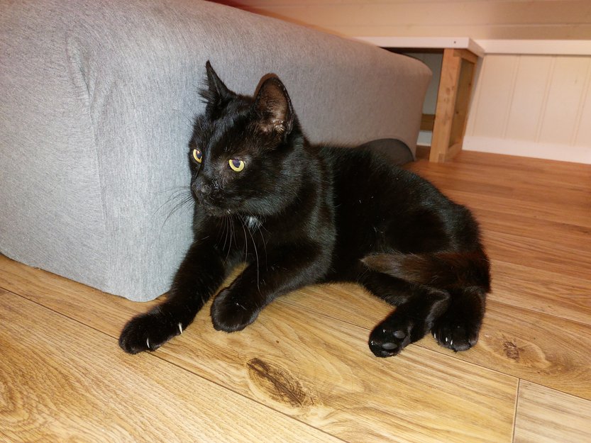 Katten har besøkt oss i fleire måneder, men no har eg klart å få han inni huset og inn på eit rom. Besøkte dyrlegen 3. oktober og han hadde ikkje chip.