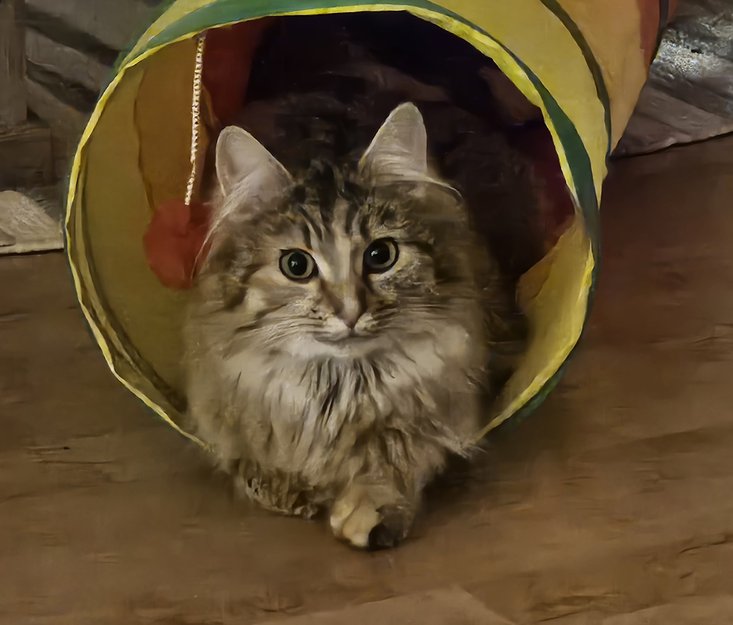 Langhåret hunnkatt. Ikke sterilisert. Ganske tillitsfull.