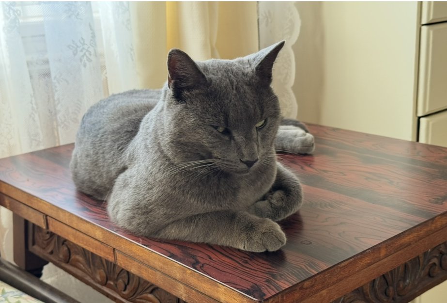 Ca 2,5 år gammel, helgrå med bittelitt stripete, litt mørkere hale. Chippet, ukastrert. Kan gå langt hjemmefra, tidligere observert ca 2 km hjemmefra, men kan være hvor som helst.