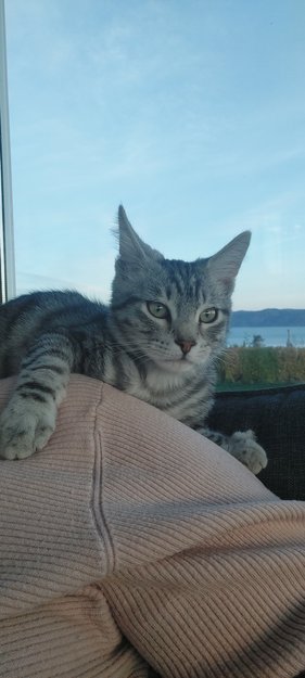 Ganske slank, liten og elegant, kan nok fort tas for å være kattunge av størrelse. Har bare en 'ball' og er ukastrert. Veldig sky, men kjærlig på de han er trygg på.