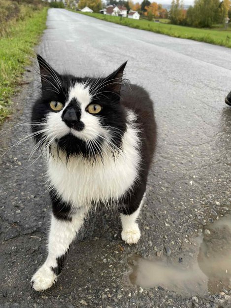 Svart og hvit hannkatt ble funnet i Østre Toten