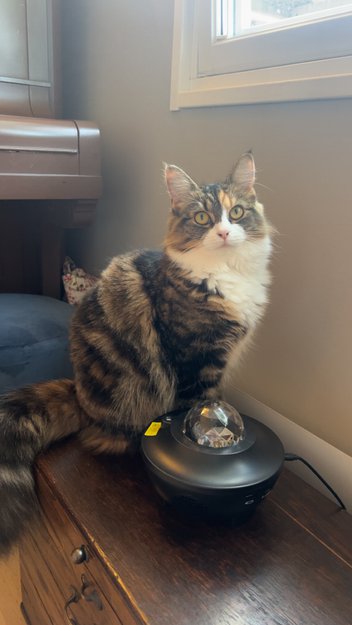 En litt sky pusejente som er veldig pratsom og svarer når du snakker til henne. Har en hjertetatovering i venstre øre og et halsbånd med bjelle. Masse pels, gaupeører og stor bustete hale. Ellers liten.