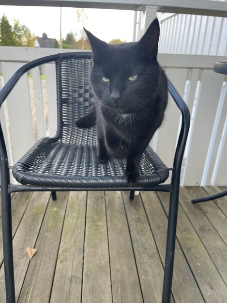 Katt som har dukket opp på gårdsplassen og holder seg der.