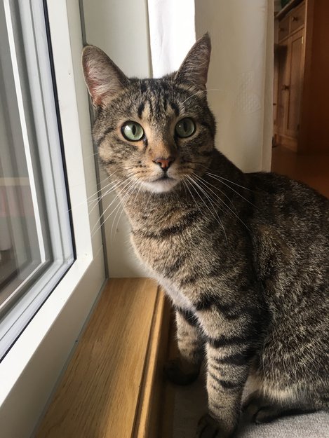 9 år gammel hannkatt. klassisk stripet korthåret huskatt.